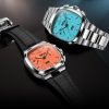 The unusual watch comes with an unusual oval shape that measures 59 mm x 43.4 mm in diameter. To make it simpler to fathom and imagine, consider its horizontal measurement to be the size of Luminor Marina from Panarei and its vertical measurement to be the size of the typical SKX007 from Seiko. Coming with a water resistance of up to 50 meters, the watch case is made out of Titanium, White gold and 18ct rose gold and the watch is delivered with a genuine alligator strap and is limited to only 8 pieces.