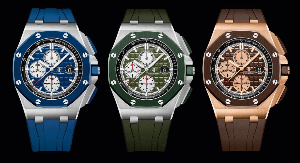Audemars Piguet offers a glimpse of the 2019 Royal Oak Offshore collection with a preview of three new Royal Oak Offshore Self-winding Chronographs in camouflage colors. Note that these watches will be officially released at the Salon International de la Haute Horlogerie (SIHH) in January 2019.