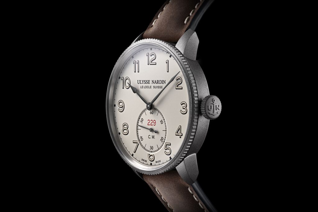 High legibility and supreme accuracy are one of the few key attributes of a marine chronometer and the Ulysse Nardin Marine Torpilleur Military looks like a winner on both these fronts. Let’s start by talking about the dial first. With the dial of this watch the brand is going for a much cleaner look as compared to the slightly crowded dial of the Marine Torpilleur. Roman numerals have now been replaced Arabic numerals and that along with the removal of the power reserve indicator at 12 give the dial sense of airiness, which should make for a more pleasant experience in reading the time. The Arabic numerals have also been coated with super-luminova which would make it possible to read time in even low light conditions and is certainly a paramount attribute of a military watch. There is a large subsidiary second’s dial at 6 which has also been sanitized like the rest of the dial by excluding the date window and also replacing the “Chronometre watch” text signifying that the watch is accurate within COSC specifications with just two characters “C.W.”. One of my favorite details on this dial is the serial number below the 60 second marker on the oversized seconds dial, which has been rendered in red giving the otherwise plain dial some pop of color.