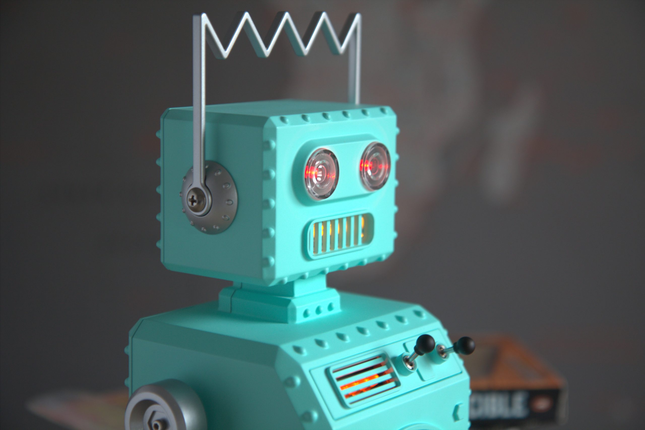 The Retro-Bot showcases unique styling and high-end materials such as Aluminium which houses a 100% Swiss watch winding movement from SwissKubik. This movement is sold worldwide and trusted by many. The movement is modified in Ireland to add LED light features that bring the Retro-Bot to life and display its personality.