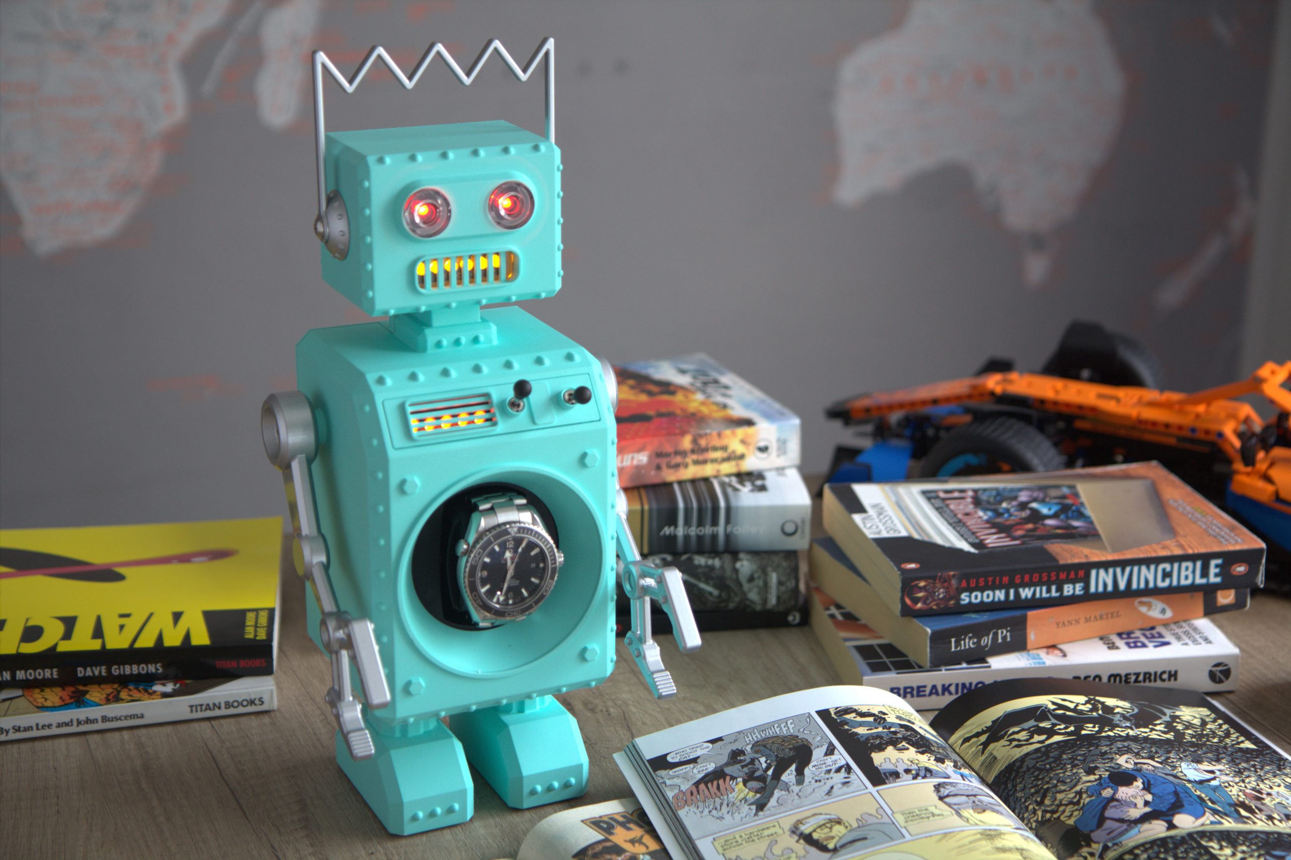 Established in 2022 Chrome Calibre is a company that aims to bring luxury watch winders with unique designs to their customers. Designed by Karl Brown from Dublin, he took inspiration from the toy tin robot toys of the ’50s and ’60s. His goal was to take what is usually a basic box and turn it from a utilitarian item that’s kept in the back of a wardrobe to a functional art piece that is kept on display and admired.