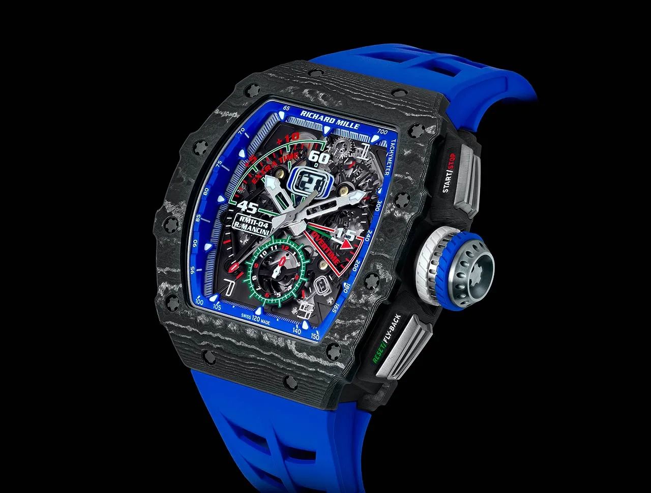 Richard Mille is known for doing two things, making extremely high end watches with intelligent designs using innovative materials and also partnering with just about anyone of influence to make their watches. This time, the new RM 11-04 Automatic Flyback Chronograph is strapped to the wrist of Roberto Mancini, the manager of the Italian national football team. For our readers from the USA, ‘soccer’ is the type of football played, rather than American football. Games will typically last 90 minutes with added time if needed. Roberto Mancini has worked with Richard Mille before to create a chronograph watch that can effectively and accurately time a match, but now he’s back working with Richard Mille to create this new and more colourful version.