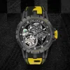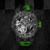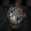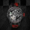 Furthermore, the design of the new watch is impressive featuring a black DLC-coated titanium case with the seconds counter appearing more like a speedometer. Also the pointers surrounding the rim perfectly preserve a race car theme. Meanwhile, the new trigger and bridge designs with a new RD508SQ hand-wound movement with a state-of-the-art black Astral Skeleton motif are fully visible from the front and back.
