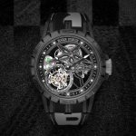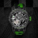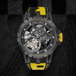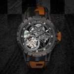 When 3 legends of different fields collaborate, it often results to a mega cool product. This is very true with the unique partnership of Roger Dubuis (a watchmaker), Lamborghini (a race car expert), and Pirelli (a tyre expert). Together, they created the racing-inspired Excalibur Spider Pirelli Double Flying Tourbillon released last year. The skeleton timepiece featured twin tourbillons front and centre. Its rubber strap was also created using a Pirelli tyre that was used in a race. The trio are back at it again with the new Excalibur Spider Pirelli, this time with just one single flying tourbillon. Now before you fret because of the absence of the other one, this new Excalibur Spider Pirelli is a beast of a skeleton watch.