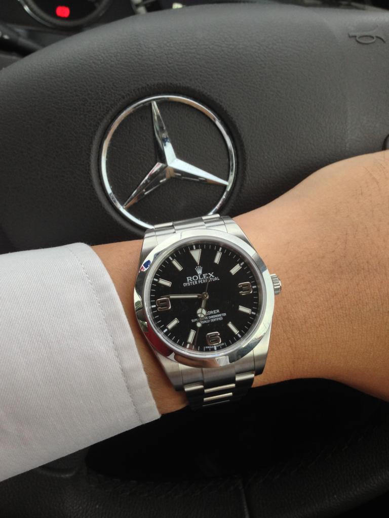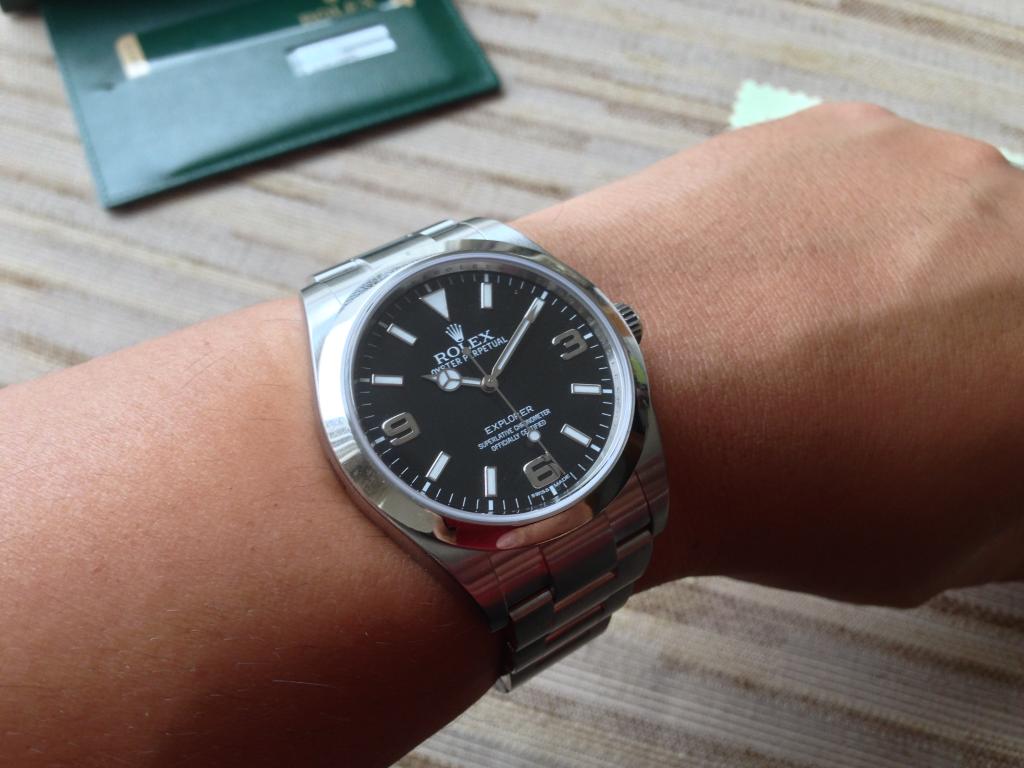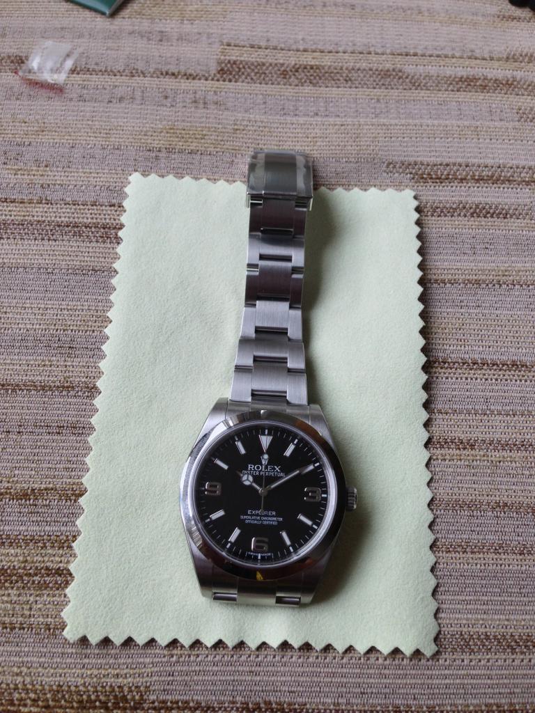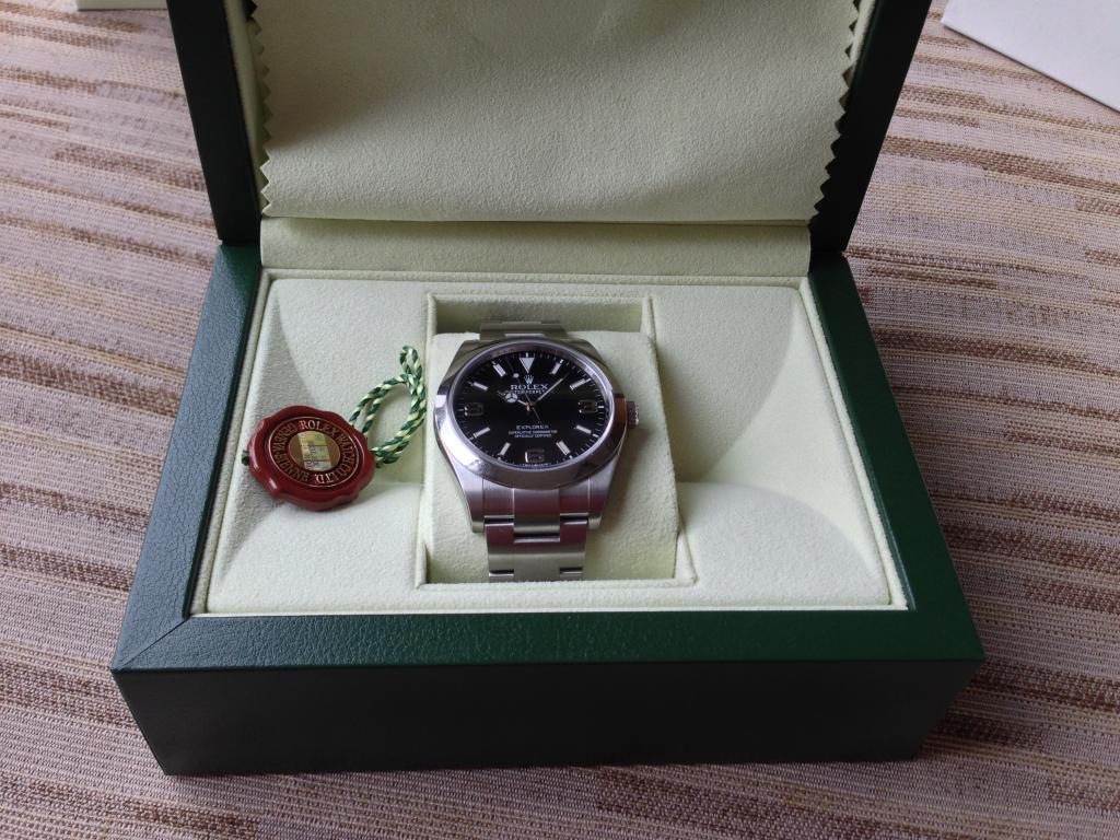 Got a great deal from my long term authorized dealer and in a few short moments, I am a proud owner of an Explorer I. The watch box is a standard square box with a white protective cardboard box surrounding it. Nothing on it at all that would indicate it is a Rolex.