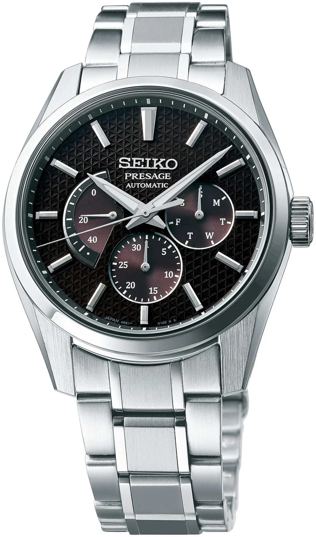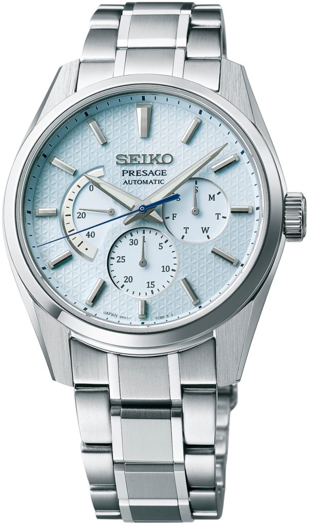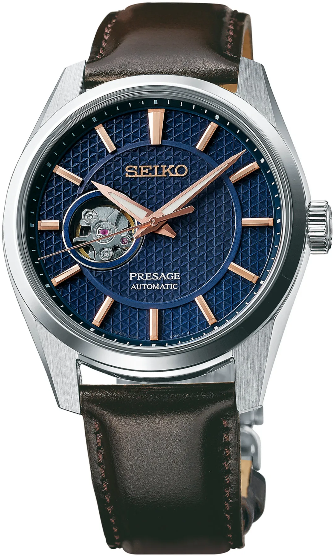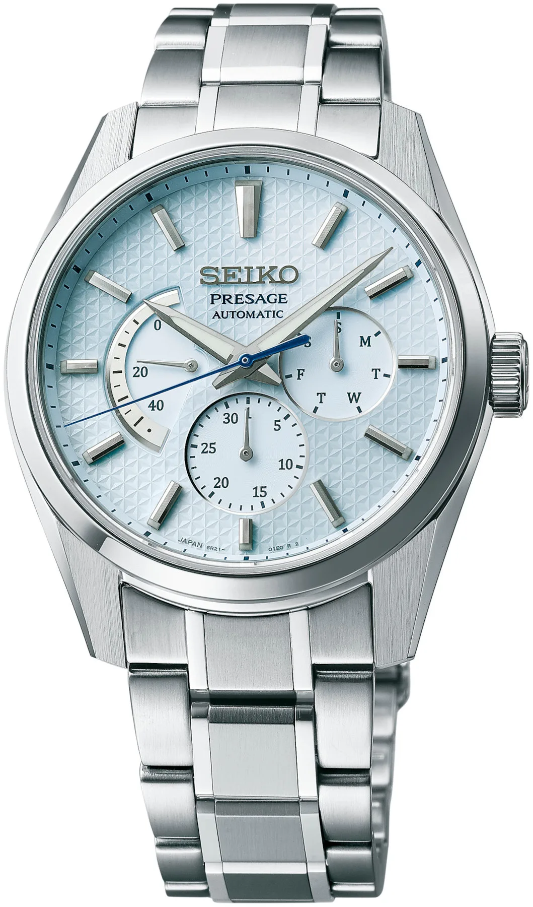 The simplest of the lot, the SPB039 & SPB311, are also the sleekest. The stainless case on these three-hand watches measures 40.2mm in diameter and has a thickness of around 11.8mm, which should make them slide easily under a shirt cuff. The SPB039 comes with a textured white dial, steel hour and minute hands, a blued seconds hand, and applied steel indices. The SPB311 features a blue textured dial with golden tone applied indices and hands. Both watches come with an open-heart circular display at 9 o’clock that gives way to the balance wheel of the calibre 6R38 that powers them. This movement operates at 3 Hz and offers a healthy autonomy of around 70 hours when fully wound. The SPB309 is accompanied by a stainless-steel bracelet, whereas the SPB311 is completed by a brown leather strap. The retail price has been set at EUR 1,000.