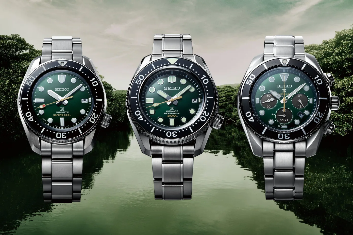 Seiko says that these watches have been inspired by the beautiful areas in and around Iriomote, an island in the Okinawa Prefecture. It’s renowned by local and international scuba divers for its diverse beauty, which has inspired the deep green dials seen on these watches.