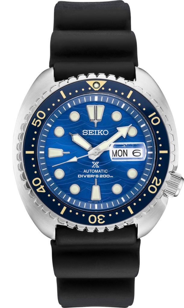 Like the case, the dials on the new ‘King Turtle’ watches remain familiar but have been refined to lend these watches a more upmarket feel. Out of the three new watches the SRPE03K1 and SRPE05K1 feature a nice squared guilloche dial, whereas the dial on the SRPE07K1 has been presented with a nice ocean wave style pattern reminiscent of the previously released ‘Save the ocean’ turtle watch. Both dials are well executed and offer added visual interest. As for the layout, you still have applied hour markers that along with the unique looking handset have been filled with Seiko’s proprietary lume formula; Lumibrite, to offer a bright glow in dimly lit situations.
