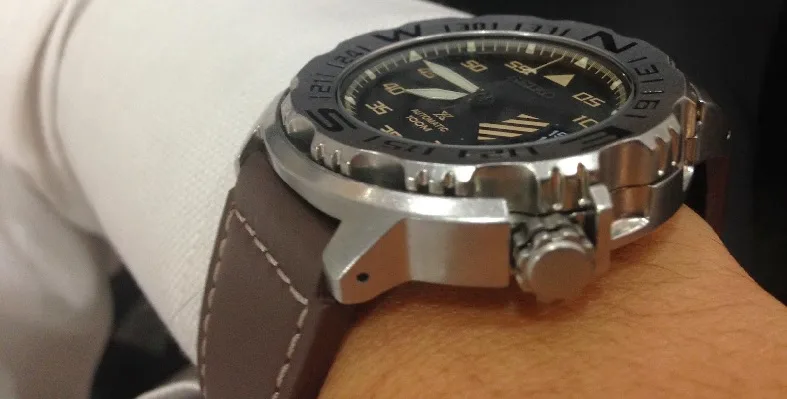 The deep gauges in the watch casing is a signature of Seiko’s Monster line. It helps gripping even if your are wearing thick gloves.