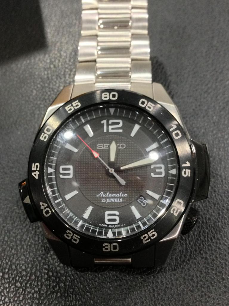 The black bezel has Arabic numbering in 5 minutes intervals. It is a permanent bezel and cannot be turned. The cursive “Automatic” on the dial signifies that it is a special tool watch for Seiko.