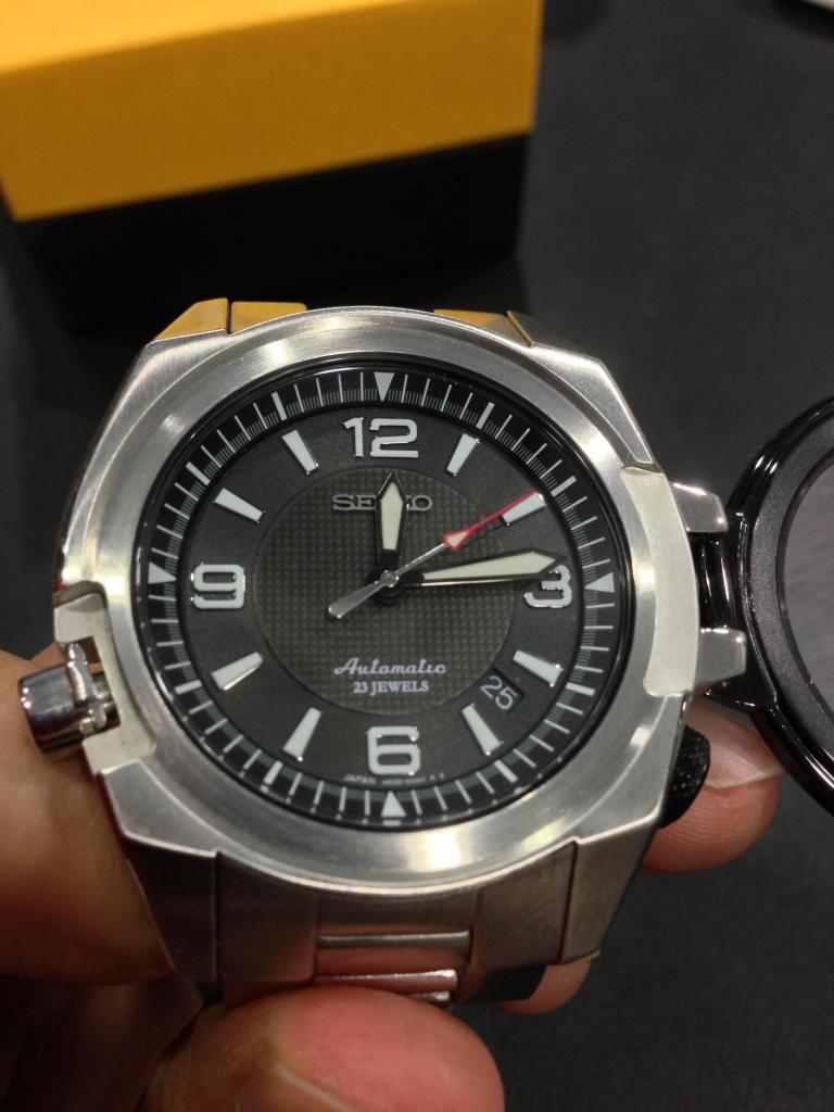 This is a fair sized “field” watch in my view. With a diameter of 43 mm, almost everyone should be able to wear this watch. It was good that designers in Seiko decided against producing a watch larger than 43 mm which is the norm nowadays. Nevertheless, it is thick at 15 mm and the “fatness” does show.