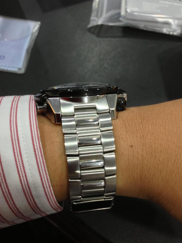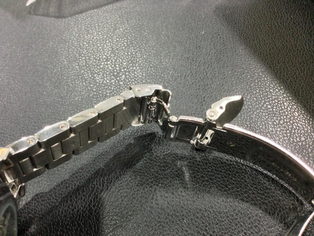 This watch uses the pin-and-collar system which requires you to be careful when sizing the bracelet.