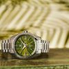 The dial versions only differ in color tones but needless to say, all the color tones are bold by design except the subtle version that sports blue dial and strap with yellow accents on the dial and internal rotating bezel making the watch more sporty. The other versions are made of three other bold colors which are orange, lime green, and yellow. The dial looks exceptionally unique featuring large hands with SuperLuminova coatings and raised accents in the form of square patterns. The indices are superb and very readable which is very important for a divers watch.