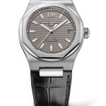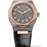 The 42mm Laureato is more or less identical to last year’s 40mm. Girard-Perregaux has done a good job of capturing the 70’s style of the original Laureato in this new version. The dial is with the iconic Clous de Paris pattern and has a huge GP logo on 12 o’clock. It has baton hands and hour markers filled with luminescent material. The dial comes in variations of silver tone, slate grey, and blue. The case and bracelet is has polished center links and brushed outer links, the case is a nice combination of brushed and polished stainless steel as well. Now we get to the bezel, and I know a lot of you are going to say Girard Perregaux have copied Audemars Piguet Royal Oak with this watch. And while it is true that the Royal Oak has a similar bezel, dial, hands, and placement of the logo, this was the style in the 1970’s. A lot of watches looked like this. The bezel consists of an octagonal ring placed on top of a round plateau of sorts. The case comes in steel, titanium and red gold/titanium.