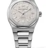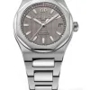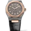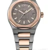 The 42mm Laureato is more or less identical to last year’s 40mm. Girard-Perregaux has done a good job of capturing the 70’s style of the original Laureato in this new version. The dial is with the iconic Clous de Paris pattern and has a huge GP logo on 12 o’clock. It has baton hands and hour markers filled with luminescent material. The dial comes in variations of silver tone, slate grey, and blue. The case and bracelet is has polished center links and brushed outer links, the case is a nice combination of brushed and polished stainless steel as well. Now we get to the bezel, and I know a lot of you are going to say Girard Perregaux have copied Audemars Piguet Royal Oak with this watch. And while it is true that the Royal Oak has a similar bezel, dial, hands, and placement of the logo, this was the style in the 1970’s. A lot of watches looked like this. The bezel consists of an octagonal ring placed on top of a round plateau of sorts. The case comes in steel, titanium and red gold/titanium.