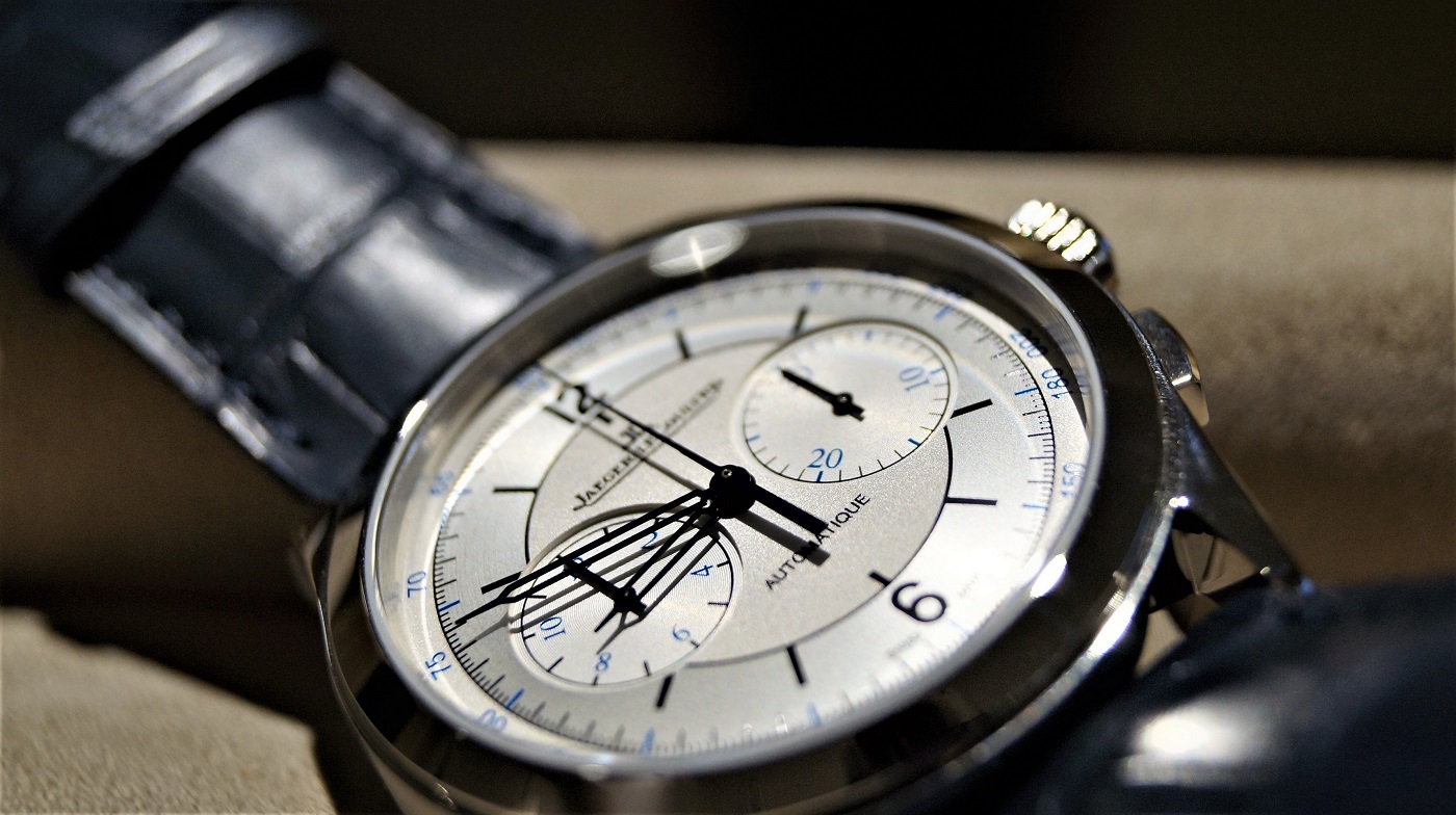 The final Master Control that JLC released at this years SIHH is the Master Control Chronograph, this is likely to be the most popular of the bunch, and it’s easy to see why. This two register chronograph has a lot of things going on in the dial, but somehow, JLC manages to keep the dial very clean looking, despite it being a sector dial chronograph with a tachymeter around the outer track of the dial. Inside beats the in-house JLC caliber 751G. It has an impressive 65-hour power reserve and can count up to 12 hours of elapsed time. Since this is a two register chronograph, it does not have a running seconds hand. In my opinion, this is a good call from JLC as an additional subdial quickly would’ve gotten messy with the sector dial and two-tone dial. My only complaint with the Master Control Chronograph is that it does not have a display caseback.