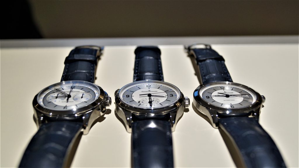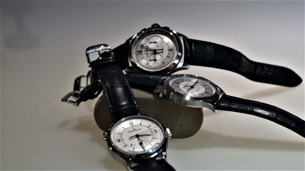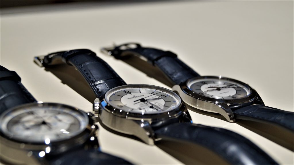 First up is the Master Control Date, this is the most affordable watch in JLC’s collection retailing at ‘just’ $5800. It has a beautiful two tone, sector dial which has a brushed silver outer section and an inner section which is a grained white texture. The watch is extremely simple featuring only a time and a date at three o’clock. The movement is the same as in the previous Master Control Dates, the workhorse calibre 899/1. However, in this new version, it has been fitted with a 22kt solid gold rotor with the JLC logo cut out in it, this is the same rotor we’ve seen in the calibre 770 of the Geophysic collection. The movement is only 3.3mm thick which makes the watch a super slim and comfortable 8.5mm.