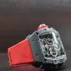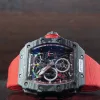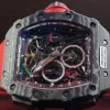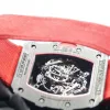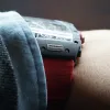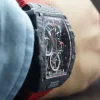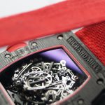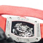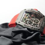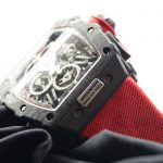As for the classic 44mm x 49mm tonneau-shaped case of the RM 50–03 McLAREN F1 watch, we can see 3 technologies used although 2 of these technologies are already present on most RM watches like the grade 5 titanium and carbon TPT known for its wavy grained texture. The new graphene material added is so revolutionary that it makes the RM 50–03 McLAREN F1 watch even more lighter. Interestingly the caseback also sports 600 parallel layers with graphene reinforcement, now just think about that brute strength my friend. As for the design, well if you’re a petrol head, you’re gonna love this case. Its chronograph pushers look like the air intake ducts of the McLaren-Honda race car. Then there is the huge crown emulating a racing wheel rim, in fact the whole DNA of the watch talks about racing, it’s crazy.