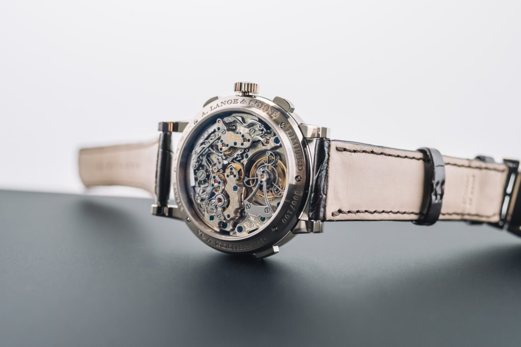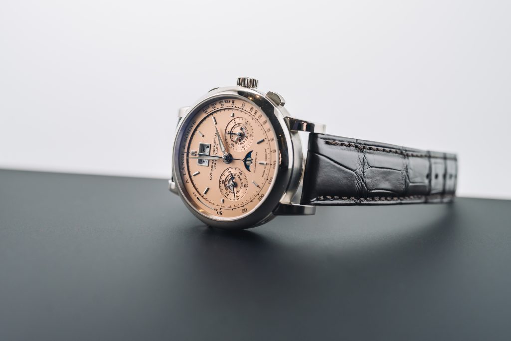 Like with the Triple Split we saw last year, no one loves to one-up Lange’s watches more than Lange itself. You may remember that the Masthead got to wear their precious Datograph Perpetual for two weeks to review it thoroughly last year. Well, this year, Lange unveiled their trump card and added in a tourbillon, a complication they don’t produce too often. Like their main competitor, Patek Philippe, Lange often hides the tourbillon from the dial side, only showing it to those who are chosen by the friendly staff to view the rear. The first Datograph Perpetual Tourbillon was unveiled in a 100 piece limited edition in 2016, three years later it’s back with a salmon dial, still limited to 100 pieces, so our chances of two weeks of road testing with this bad boy are slim. Still, there’s always hope.