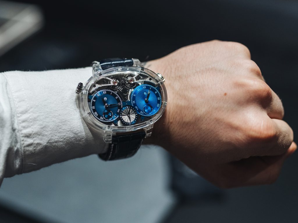 Since the start of their own manufacture in the year 2009, Armin Strom has gone ahead to establish a strong foothold for themselves in the world of Haute Horlogerie. The brands first foray into the complicated yet intriguing concept of Resonance saw the light of day in the form of the Armin Strom Mirrored Force Resonance watch. And while Mirrored Force Resonance did exhibit the brand’s prowess at the art of skeletonization, this time around the brand has gone ahead a created a watch that does not believe in hiding anything at all. The Armin Strom Dual Time Resonance Sapphire is the brands latest effort that features two independent movements that power two separate displays (as seen on the Armin Strom Masterpiece 1), packed into a sapphire crystal display giving a nice 360 degree inside out view of the entire watch.