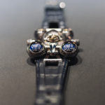 To fix this issue, the tourbillon here is mounted perpendicular to the dial, so that whether you’re sitting, standing or generally doing something interesting the tourbillon is always in the best position to keep the timing accurate. It moves faster as well. It’s a 30-second tourbillon which, as the name suggests, completes one rotation every 30 seconds. Normally a tourbillon completes a revolution every minute.