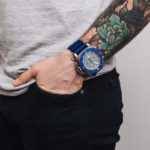 Perhaps the flagship range of the brand, the Art Piece line shows Greubel Forsey’s skills as not only master watchmakers but master engravers as well. The engravings speak for themselves, but the clever mechanics of the piece can be easily missed at a glance. True, it would be hard to miss the double tourbillon set slap bang in the middle of the frosted blue plate, using a tourbillon inclined by 30 degrees inside a cage which also rotates to remove the effects of gravity in any position theoretically.