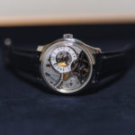 The H1.0 is a visual treat offering three-dimensional transparency. Viewed from any angle it takes an architectural approach to visualize the passage of time, placing the present in the context of the past and future, using liquids. All elements of the specially developed skeletonized mechanical movement collaborate closely to form the big picture of pure functionality. From the clearly visible power reserve display to the constructed wheel that indicates the flow of the seconds, time is in perpetual motion. Positive energy emerges from a series of visible tensions, such as the shaping of the steeply curved case and the clipped lines of the bellows’ extractors. Even the side-view of the watch tells the story of time’s passage via cut-out digits embedded in the deep grooves of the case‘s exterior.