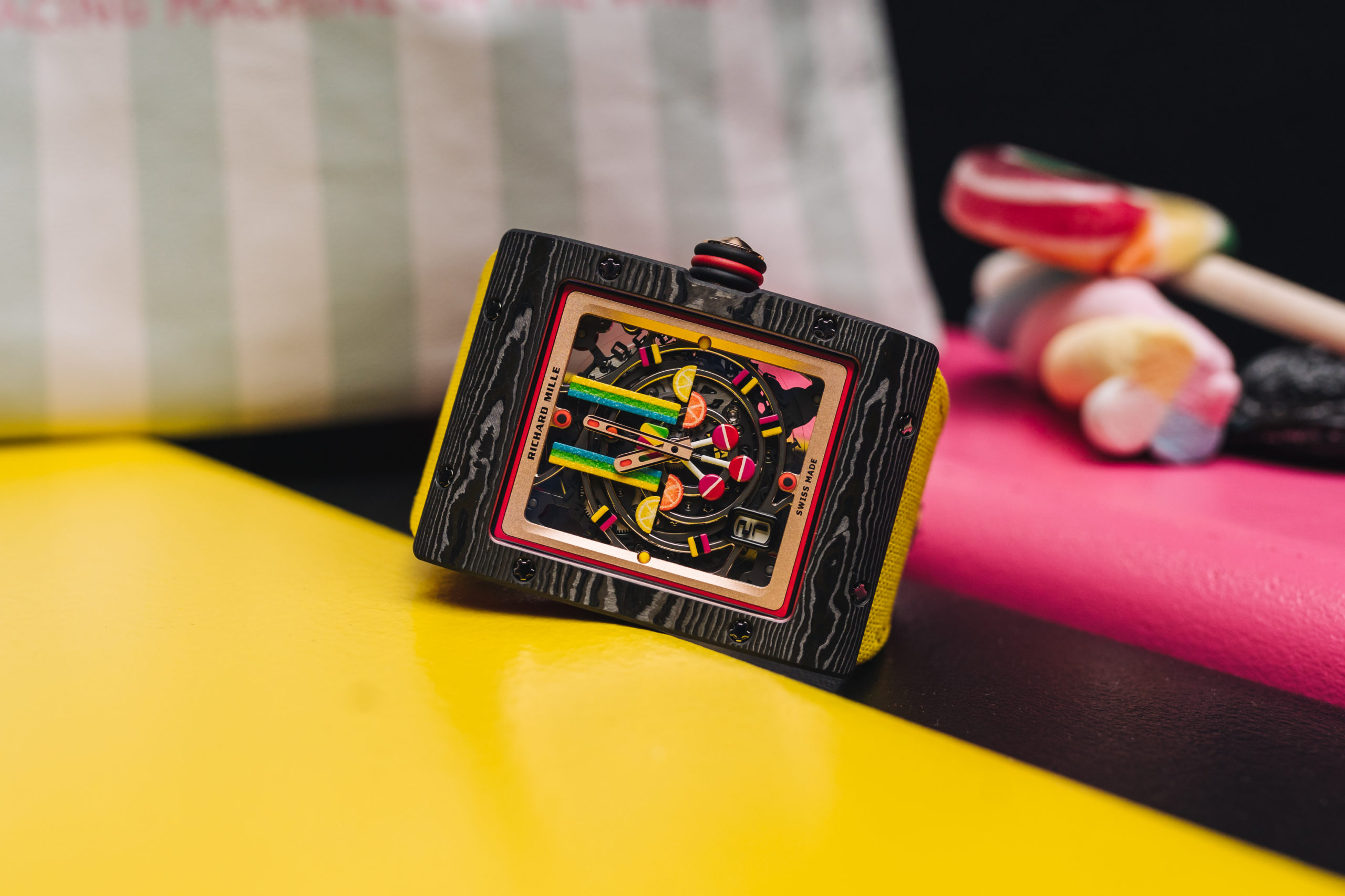One of the most popular watch brands on Instagram is Richard Mille, the intricacies of their watches have become one of their biggest selling points alongside their futuristic, technical cases. This year their watches took a delicious turn into the world of sweets, or for our American readers, candy.