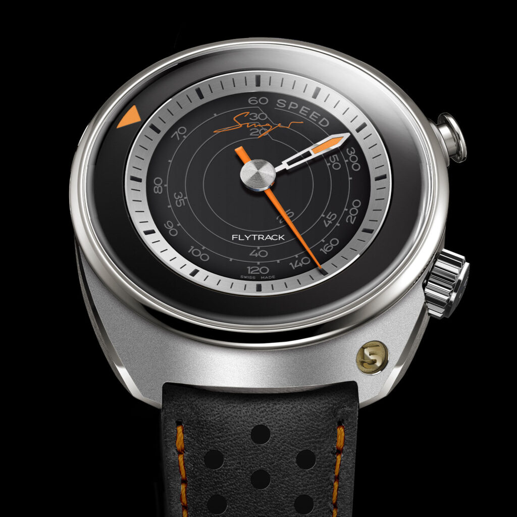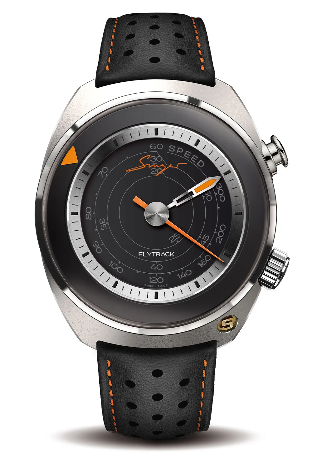 A few versions are available, each with a different colouration on the dial. You can choose from a Flytrack equipped with either a tachymeter (in km/h), a telemeter (in km) or a pulsometer like you’d find on high-end chronographs from the likes of Patek Philippe. This means that the Flytrack can help you calculate the speed of an object, the distance from an object or sound and heart rate (when counting 15 pulses). Useful, huh?