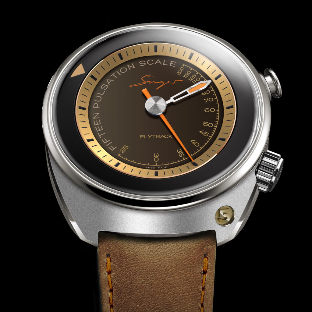As you will have noticed, there is only one pusher on the side of the case, but a flyback chronograph requires a separate pusher typically to reset the seconds while the chronograph is still running. The difference with the Singer Flytrack is that the chronograph is always running. To use the flyback function, the wearer presses and holds the pusher at 2 O’clock. This resets the seconds hand to 12 O’clock and pauses it. When the wearer releases the pusher, the hand starts running again, and the watch can now be used to time events. Granted, it can only time an event that’s one minute long, but Singer has thought of that too.