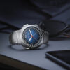 This type of watch is seldom seen, it’s called a bullhead chronograph thanks to the pushers which resemble a bull’s horns. It might seem complicated to move the entire watch’s parts around like that, but it’s quite simple. The movement in this is based on a Valjoux 7750, so it comes pre-made. All Sinn needs to do is turn it 90 degrees and hey presto, a bullhead. They then need to design a suitable case for it, of course, but if you’re a little limited in what you can do with movement making, then this is a great alternative. The 7750 has a power reserve of around 40 hours and a 4Hz beat rate.