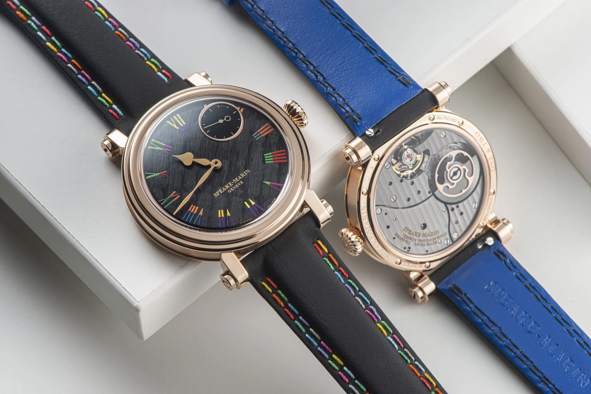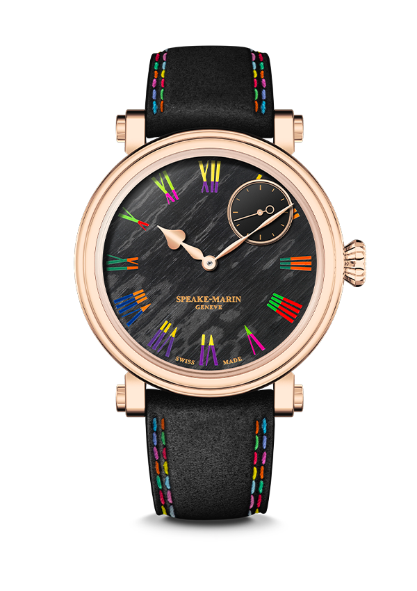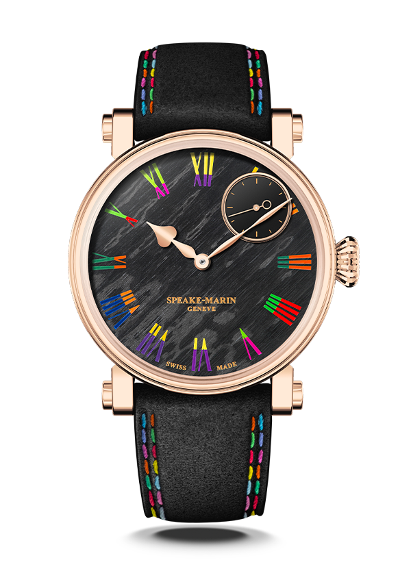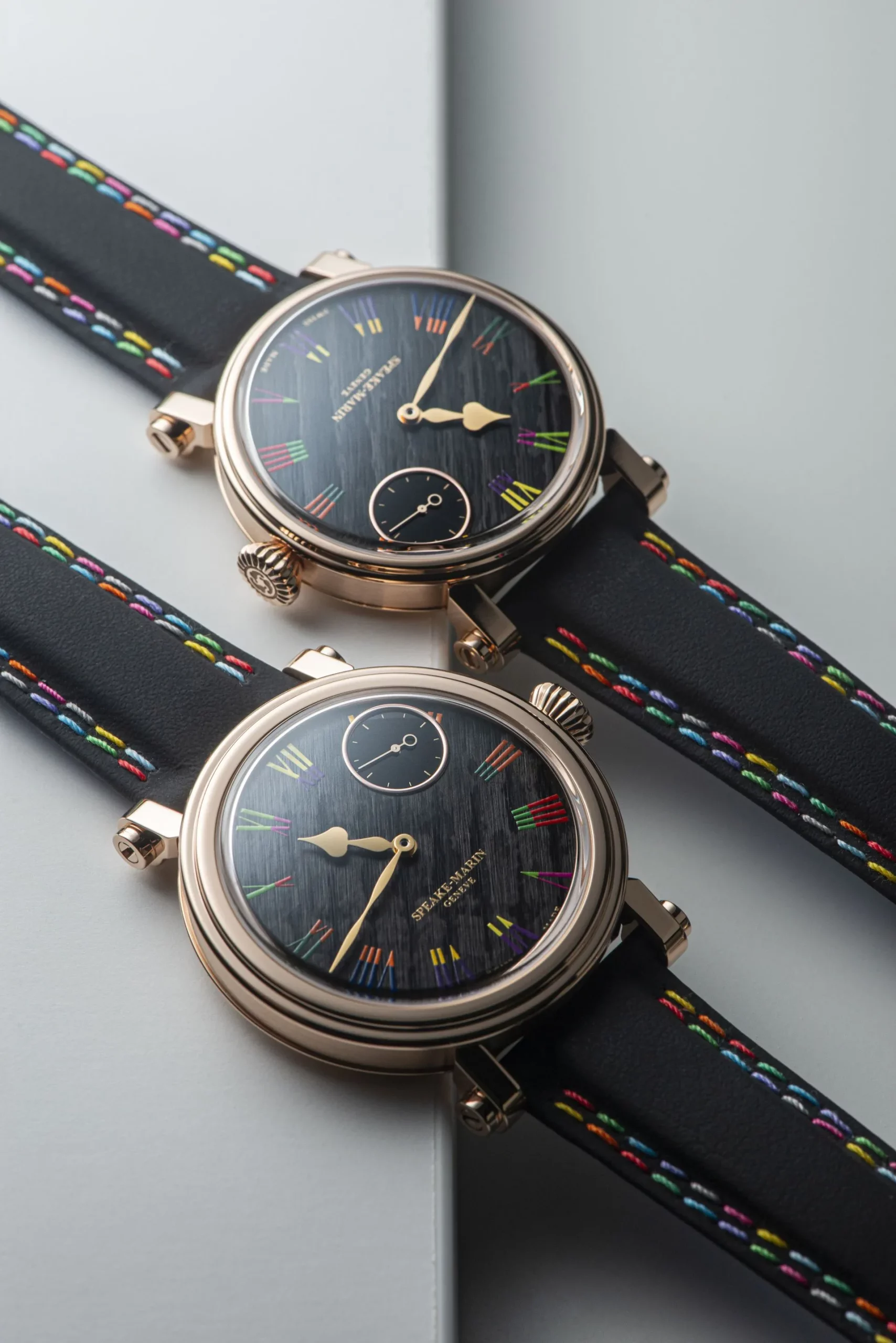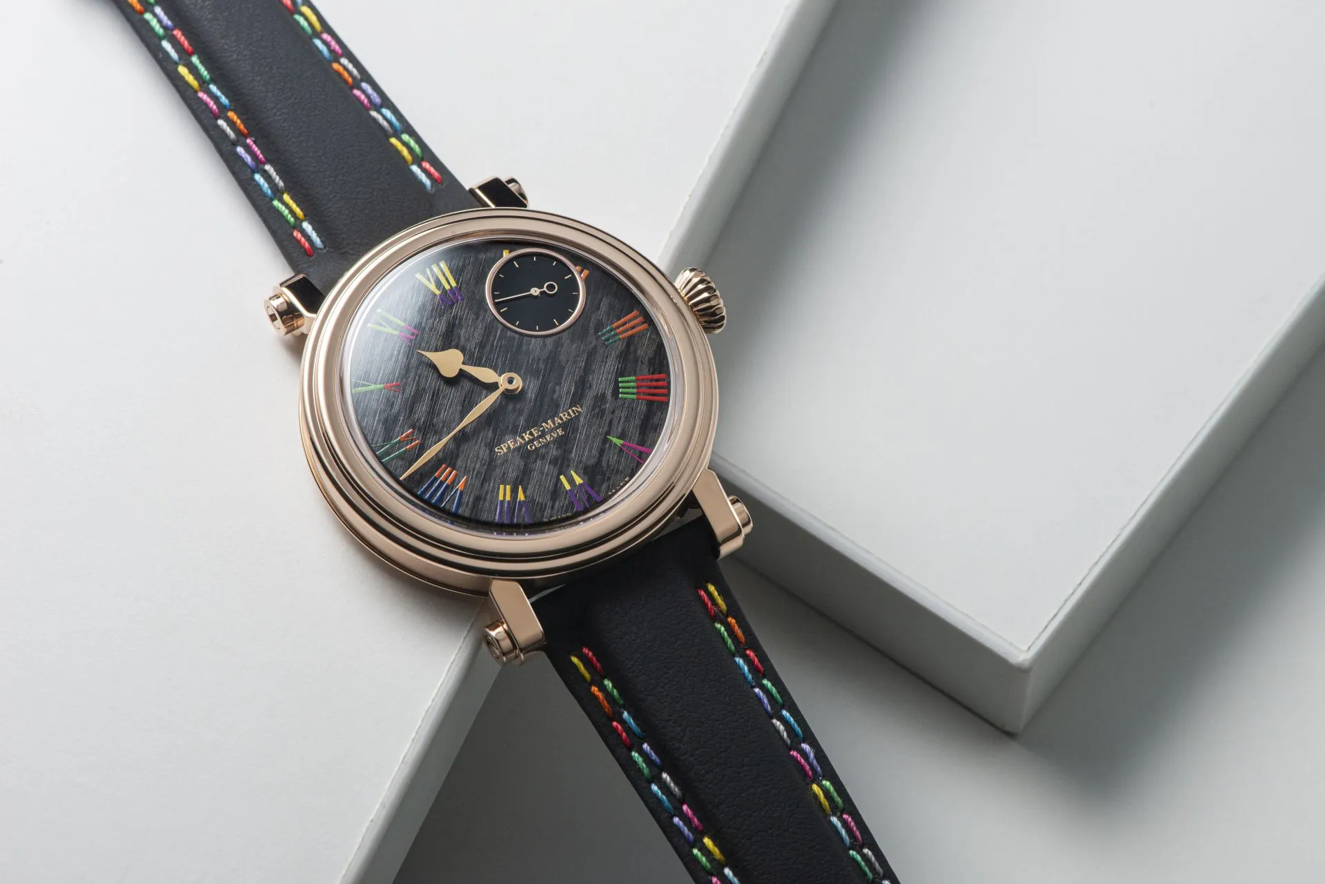 The new Speake Marin Tutti-Frutti is limited to just 10 pieces and comes attached to a black cowhide strap with double multi-colored stitching.