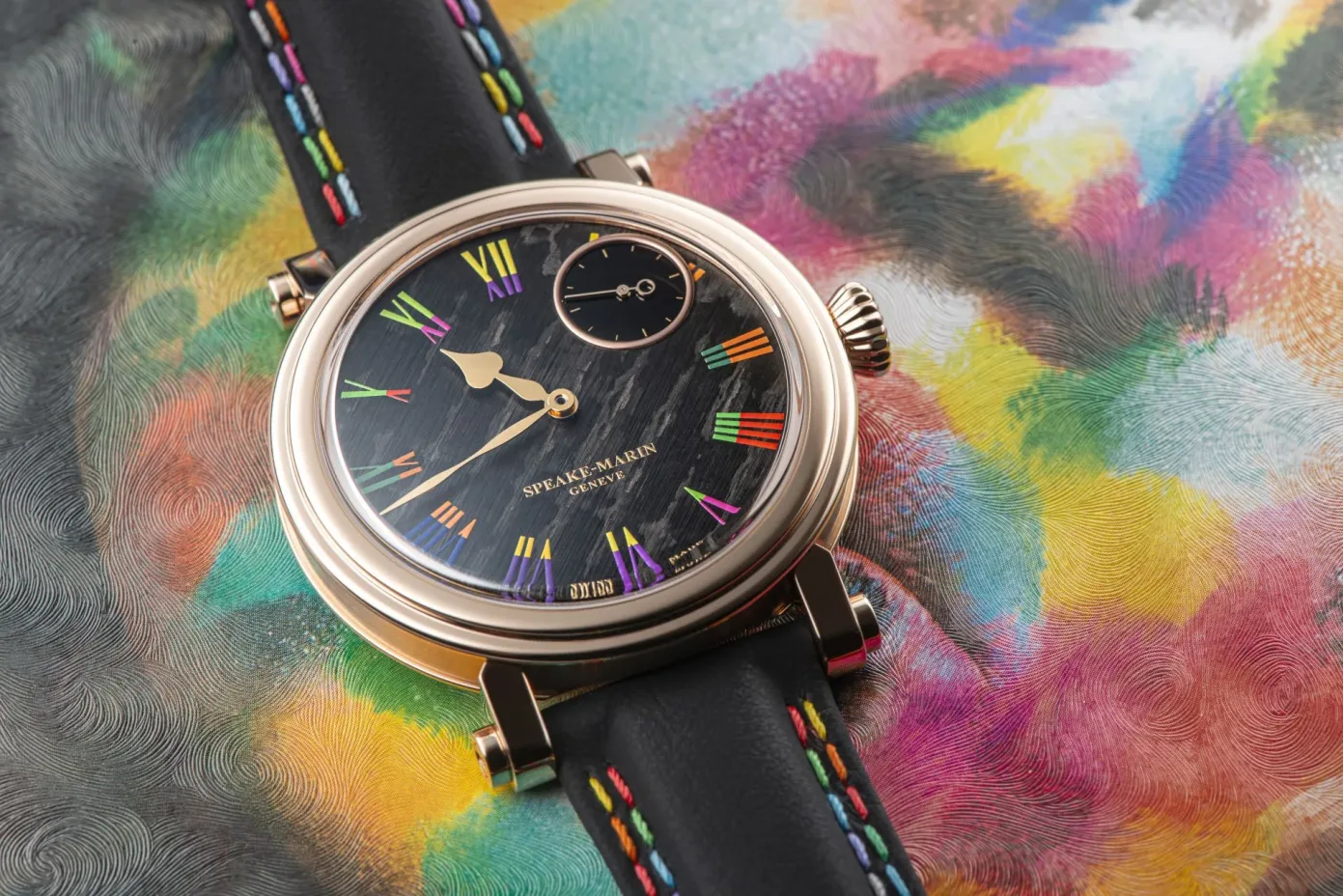 The new Speake Marin Tutti-Frutti is limited to just 10 pieces and comes attached to a black cowhide strap with double multi-colored stitching.