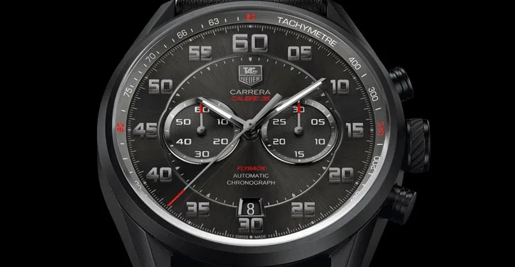 - “CARRERA – CALIBRE 36 – FLYBACK – AUTOMATIC – CHRONOGRAPH” lettering on the dial