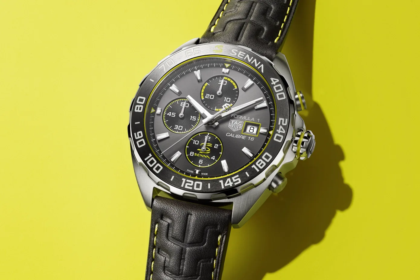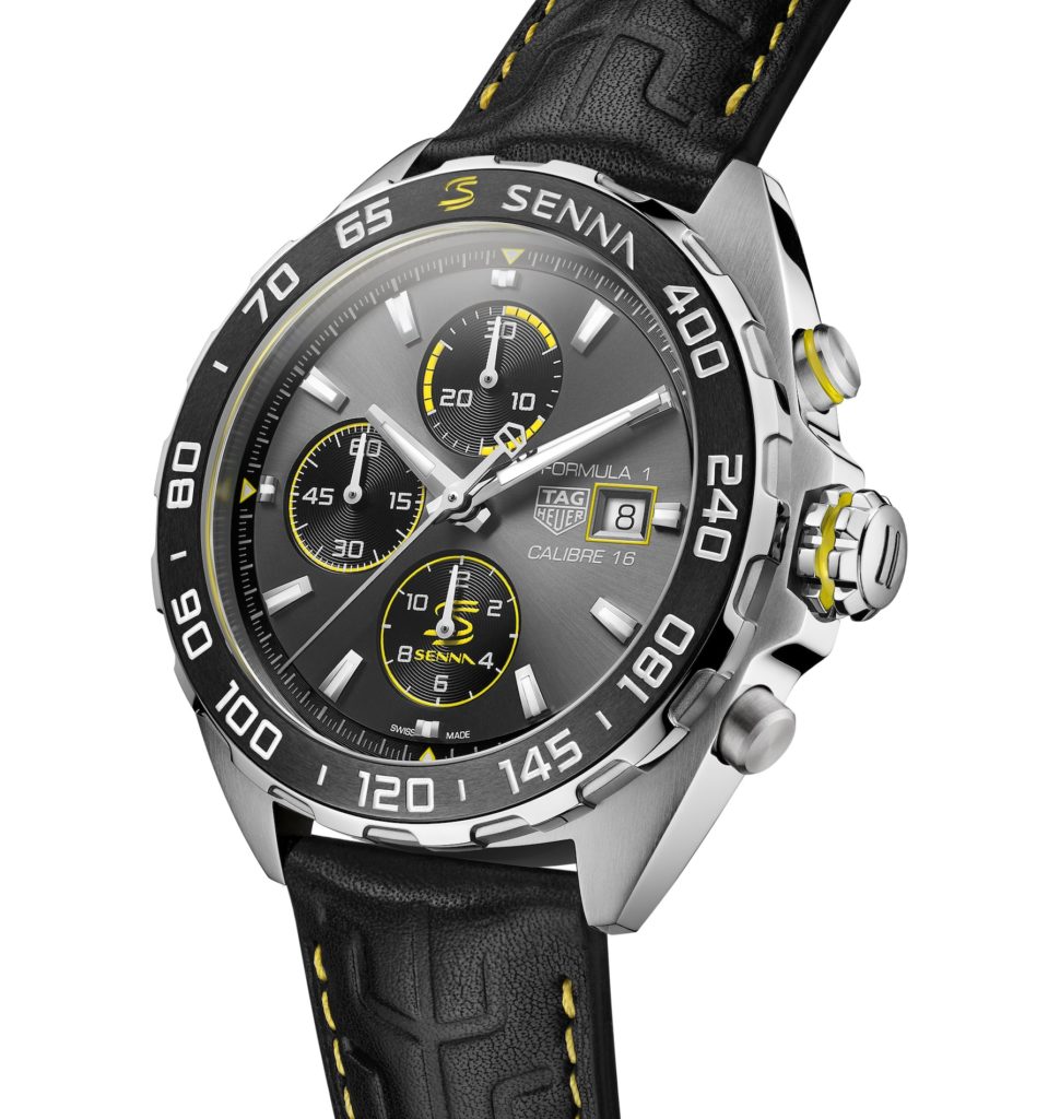 If you’re able to splash out on the 44mm edition, you’ll get a TAG Heuer calibre 16, otherwise known as an ETA 7750 movement with a 42-hour power reserve and a 4Hz beat rate. This version will cost you more, though, the price is €2900. Both watches can come on either a black calfskin leather strap or the iconic TAG Heuer design bracelet which can be seen on Senna’s wrist if you visit his Wikipedia page.