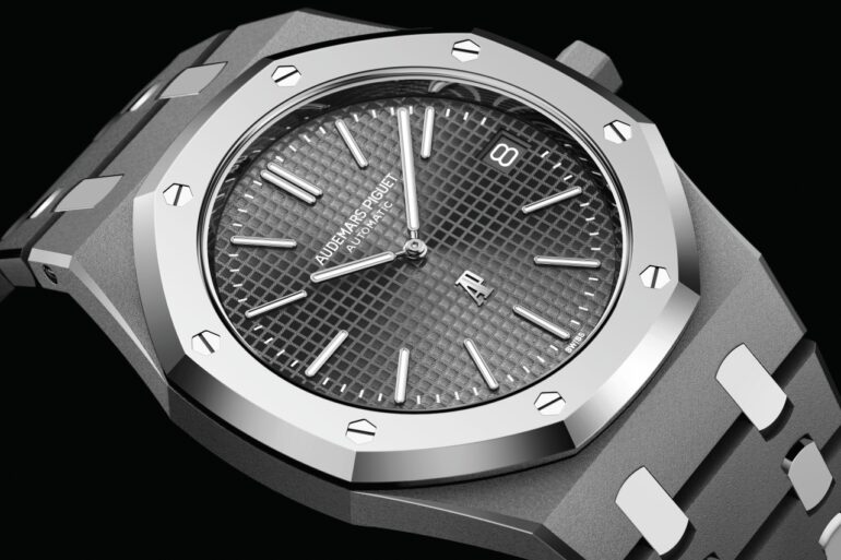 The Only Watch 2021 Audemars Piguet Royal Oak 15202 Jumbo features a titanium and palladium based construction.