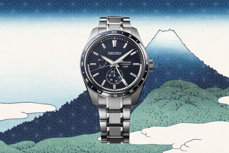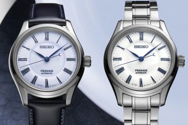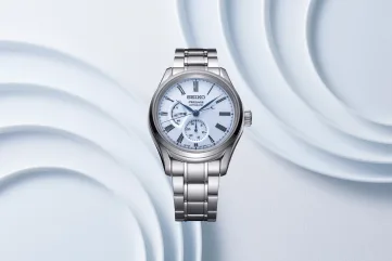 Seiko adds a traditional, hand-worked light blue shade to the previous white porcelain dial.