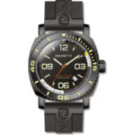 The movement used is the Miyota 9010 caliber, a 24 jewels self-winding mechanical movement with a power storage of 42 hours and operates at the frequency of 28,800 vph.