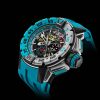 The metal indices and chapter ring are beautifully applied and inscribed with a tachymeter scale. The two pushers are extra wide on both sides of the setting crown which makes a gallant impact, not only on the sporty way that the timepiece looks but also to the precise functionality. Powered by Swiss made automatic movement but representative of the exclusive Florence hotels that inspired it, the Lungarno Chronograph definitely has Ferragamo’s unique brand of Italian luxury down to a tee.
