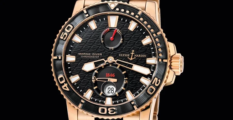 The MAXI marine diver is a luxury mechanical watch built with a 42.7 mm case made in 18 ct rose gold and comes with an automatic movement with a power reserve of 42 hours.