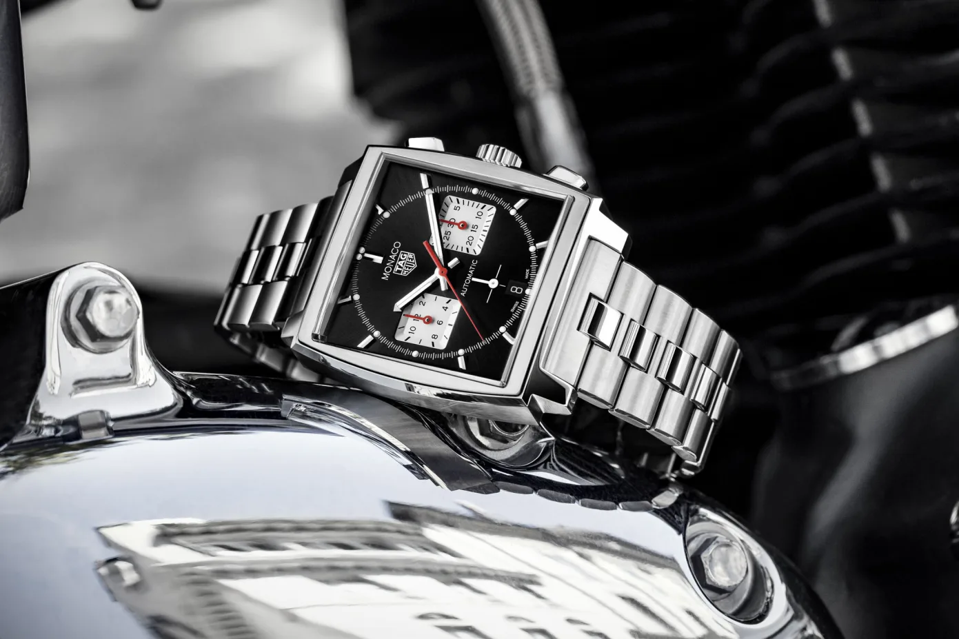 After an extensive 50th anniversary celebration of the Monaco Chronograph last year, TAG Heuer recently announced a few new Monaco references. Featuring black and blue sunburst dials these new watches are equipped with the in-house Heuer 02 movement and come with multiple strap options that include a new H link stainless steel bracelet.