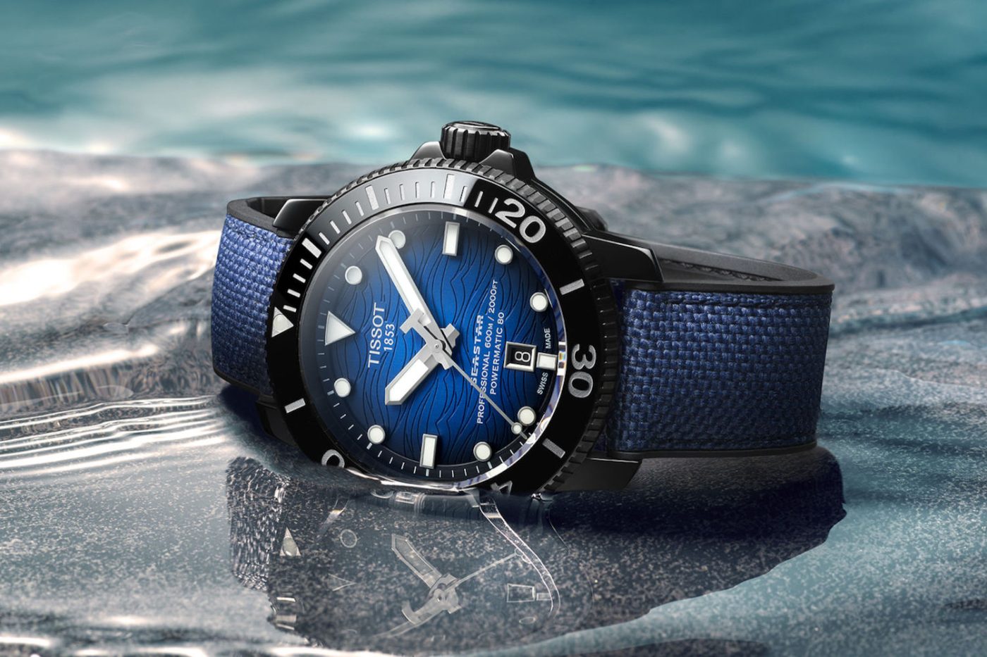 Tissot Seastar 2000 Professional Powermatic 80 black gradient dial variant retails for $995 and comes on a black rubber strap while the blue gradient dial variant retails for $1,075 and comes on a bi-material black rubber and blue textile strap.