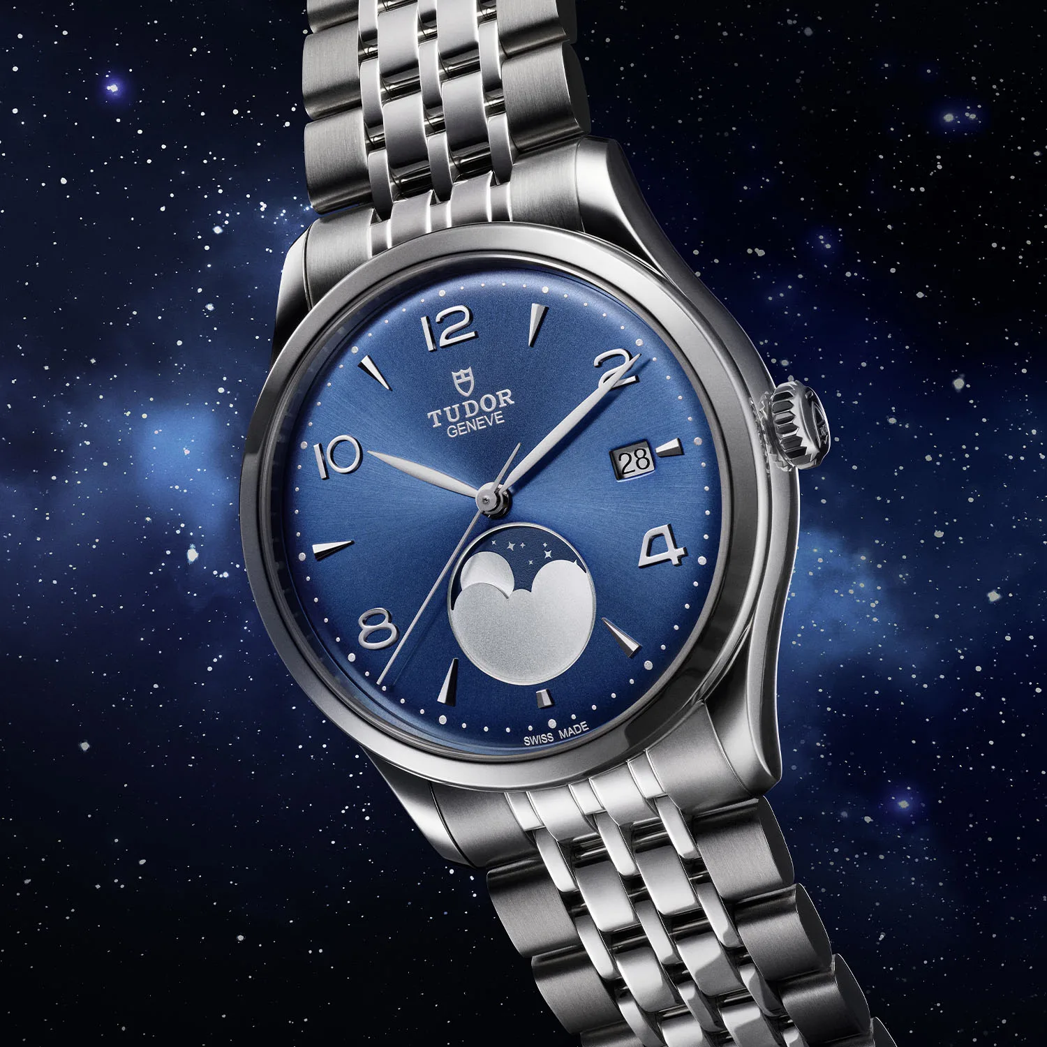 The Luna comes on a 7-link stainless steel bracelet, mixing brushed and polished surfaces, closed with a folding clasp. The Tudor 1926 Luna is available now at Tudor boutiques and authorized retailers, priced at €2,630.