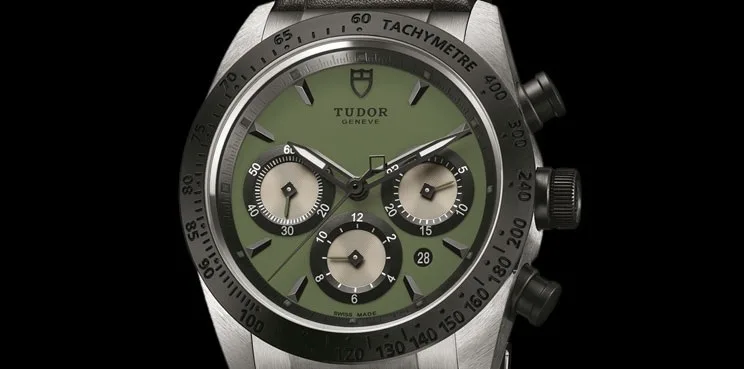It keeps the same shape as the outgoing model, 42mm across and made of stainless steel, brushed surfaces and integrated angular lugs that make it the edgy piece it deserves to be. The differences include a black ceramic tachymeter scale and black PVD coated pushers and crown. The dial is a choice of either a lovely rich green, a beautiful Italian red or yellow that reminds you of the Italian sunshine on a lovely clear day, keeping to the colours of the Ducati Scrambler that the watch is partnered with. I must however sadly inform you that this model uses a Valjoux 7750 movement instead of the new in house movement, despite being unveiled at the same time. Maybe because all the designers were too busy riding their Ducatis along the Amalfi coast? If so, that’s perfectly excusable, besides the 7750 is robust, easy to find parts for and is put to good use in this Tudor. Unusually there’s a large button in the case at 9 O’clock that’s used to set the date. Handy.