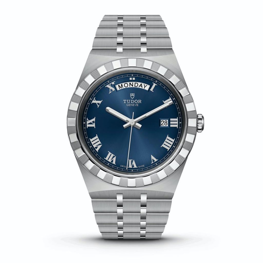 While the case has a sporty flair to it, the dial looks classic and elegant. Presented in Blue, Silver Black, and Mother of Pearl, the dials on the Tudor Royal are characterized by applied Roman numerals or a combination of numerals and diamonds. Furthermore, all dials except the MOP variant feature a sunburst finish that contributes towards the dressy outlook of the watch. The rest of the layout is straightforward with a railroad-style minutes track on the outer periphery, a date window at 3, a day display at 12(Only on the 41mm variant), and a discreet baton-style handset with lume filled hour and minute hands for better low light visibility.