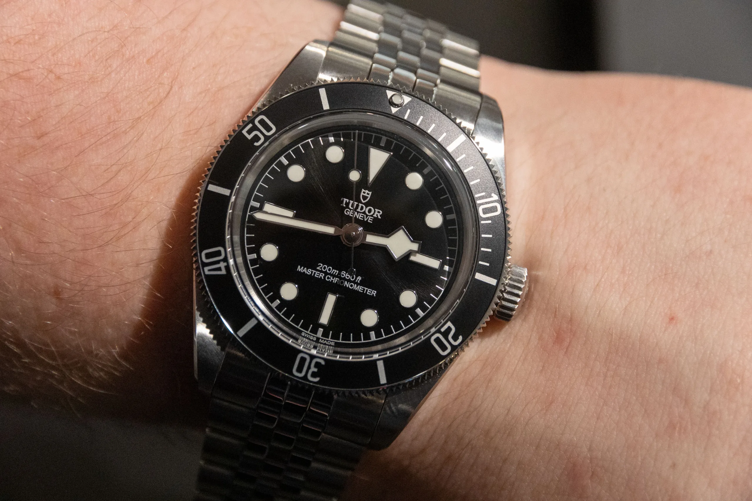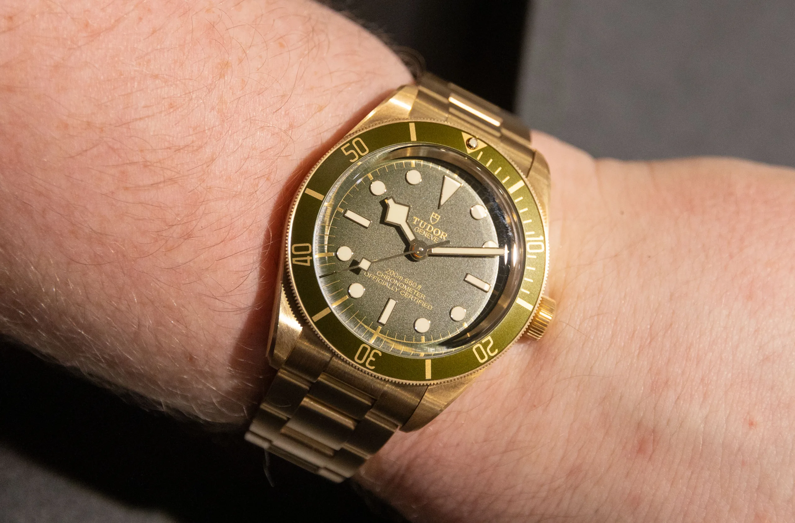 Ditching its tool-watch look, the Black Bay Fifty-Eight 18k goes full luxury with a 39mm x 12.7mm 18k yellow gold case and in a bronze-like satin finish. The gold-toned hour markers and luminous snowflake hands complement the green dial for a striking yet clean look. It prioritizes clarity, showing only a GMT hand. The COSC-certified Tudor MT5400 movement with 70-hour power reserve is on display through the sapphire caseback. The Black Bay Fifty-Eight 18k ups the luxury ante with the solid 18k gold bracelet, while the T-Fit clasp completes the luxurious look. This opulent timepiece comes with a price tag of $32,100 USD.