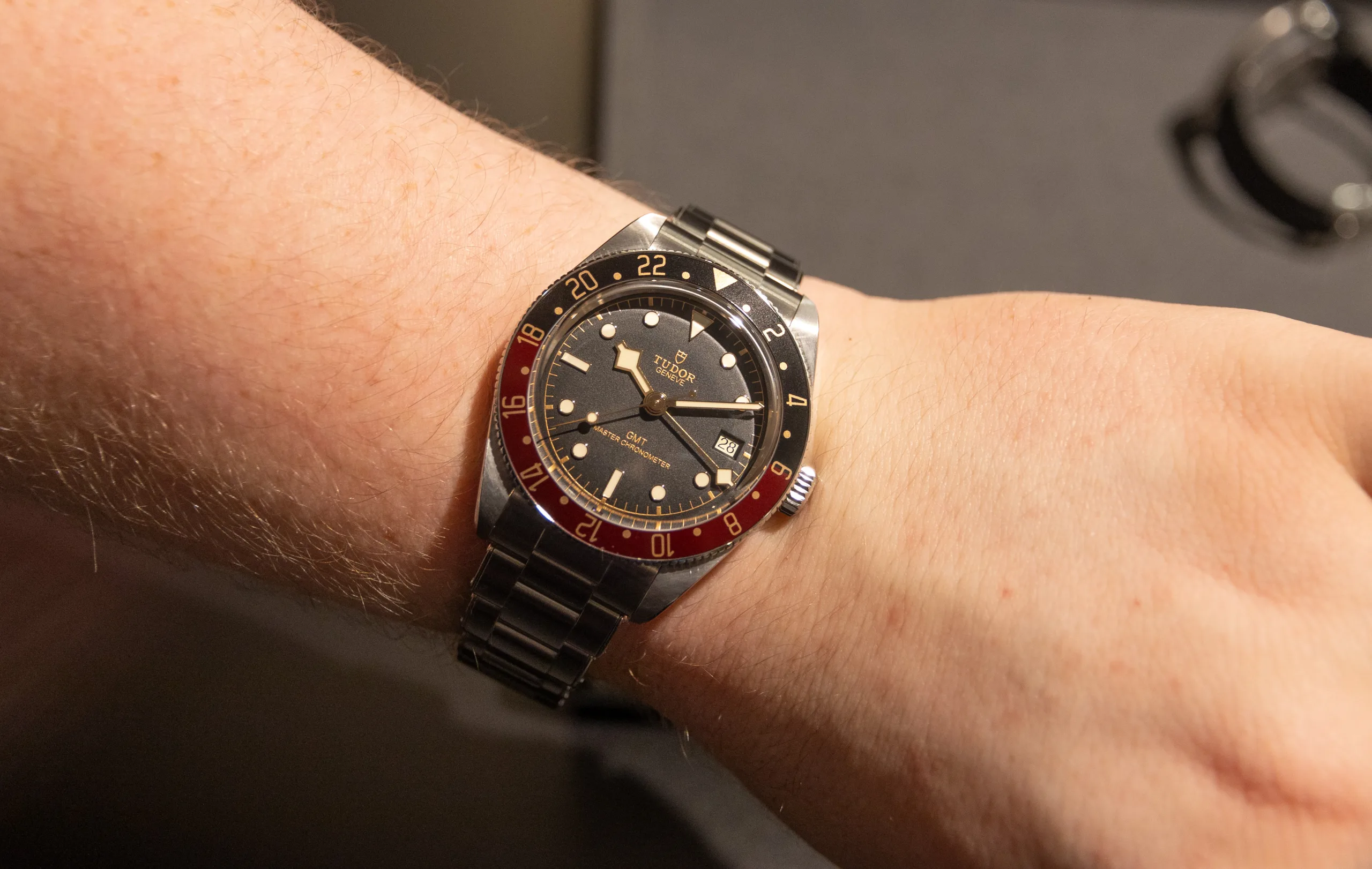 The Black Bay 58 GMT shrinks the bulk to a comfy 39mm x 12.8mm, keeping the classic finishes and iconic crown. It stays true to Black Bay DNA with a black dial, snowflake hands, and luminous markers. A vintage touch arrives with the red and black “Coke” bezel. Its METAS-certified MT5450 movement keeps you on time across time zones (-2/+4 seconds a day) and boasts a 65-hour reserve. Choose the classic riveted bracelet or comfy rubber strap with T-Fit clasp. This hot new watch hits stores soon at $4,400 USD for rubber and $4,300 USD for the bracelet.
