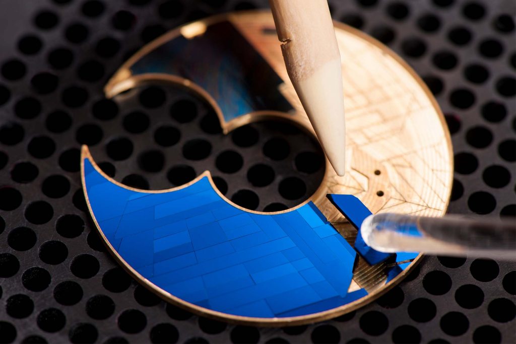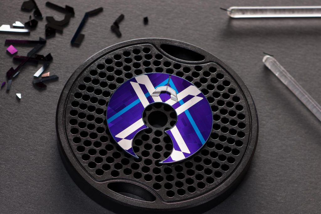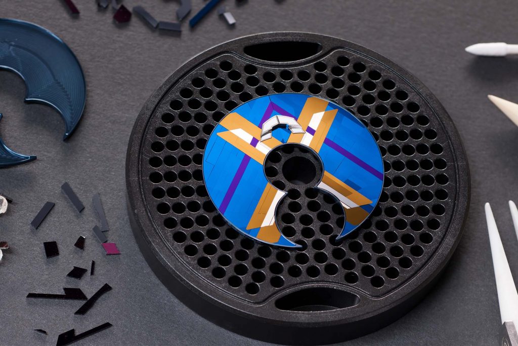 A totally new revelation in the world of watchmaking, silicium marquetry involves assembling wafers of silicon cut into segments with a plasma accelerator. Think of it as a jigsaw puzzle the watchmaker has to solve and put together. Except this time the jigsaw is technically your dial. All the subtlety of this technique lies in the craftsman’s dexterity, given that the silicon used is extremely flaky and fragile when moved. Slightly superimposing the segments one on top of the other, rather than interlocking them, will be enough to chip their edges. It thus represents a veritable feat of “technological craftsmanship”, assembling by hand a collage of the roughly 120 segments needed to create these astonishing mosaics. The end result has a unique impact, as the eye is dazzled by the glittering marquetry, resembling a bevy of interacting laser beams.