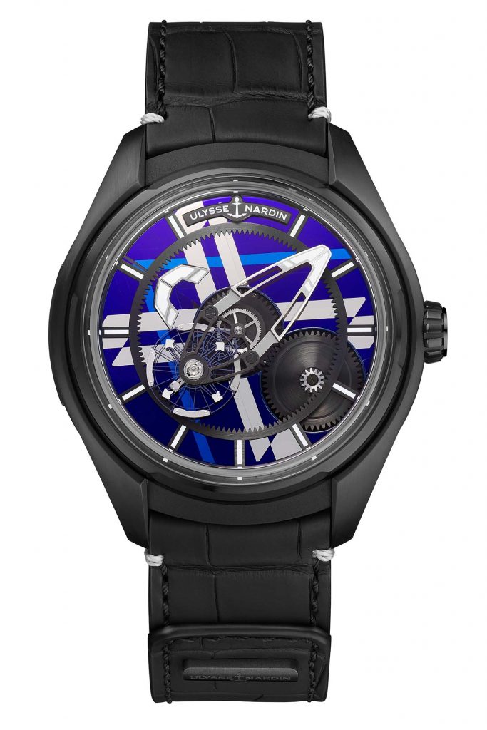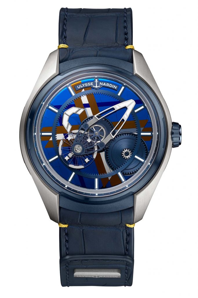 The norm-breaking, artistic Freak X is available in either a titanium blue PVD or a black DLC titanium case and will be appropriately paired with either a complimenting blue or a black alligator strap respectively. The price for the Ulysse Nardin Freak X Marquetry is Euro 29,500. Visit Ulysse Nardin here.