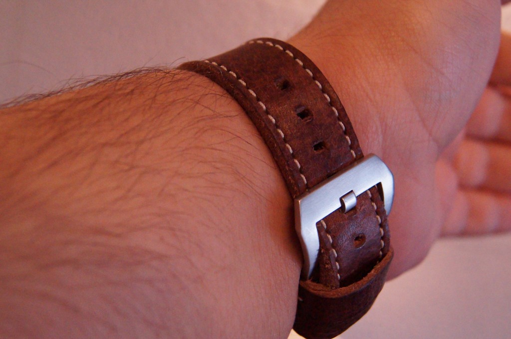 The watch comes on a brown 22 mm Eichmüller leather strap with a pre-v buckle. The leather strap on the watch is made of hard, moderate quality leather that is very comfortable too wear. The strap is thick, which results in a good weight to counterbalance the watch head. The wannabe Panarai pre-v buckle, seems to be a classic choice for some of the micro brands out there.